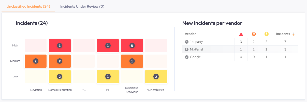 - Under Review: These appear in the Incidents Under Review tab. This is an optional state where the incident can be marked for further inspection to better assess whether its behavior is either: