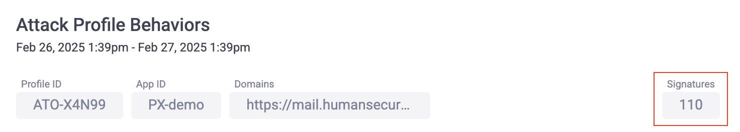 Unique indicators are especially useful when learning about Attack Profiles because as bots become more sophisticated, they have fewer obvious indicators so they can pass off as legitimate. Signatures demonstrate that the HUMAN Sightline model is continuously monitoring and learning about the traffic patterns on your application. As bots adapt their behaviors to attempt to bypass Sightline, HUMAN adapts with them, flagging these new behaviors as new signatures while still associating them with the original Profile.
