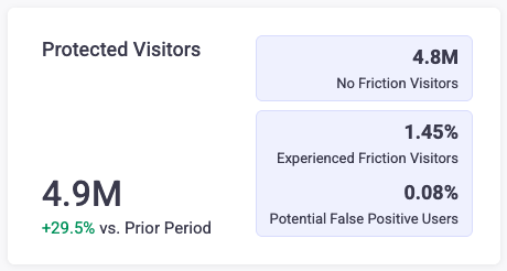 - Experienced Friction Visitors: The percentage of users who experienced some sort of soft mitigation but were not blocked during their last session.