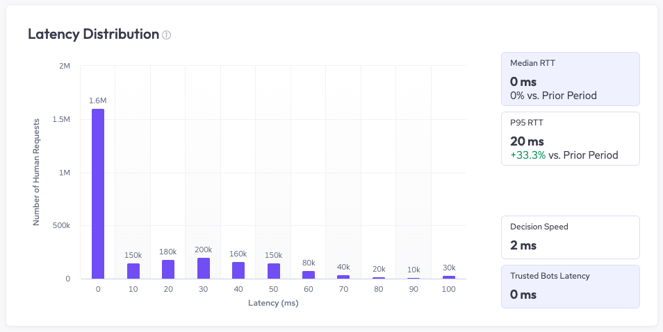 - Trusted Bots Latency: The average time in milliseconds it takes for Sightline to make a decision on how to address trusted bots.
