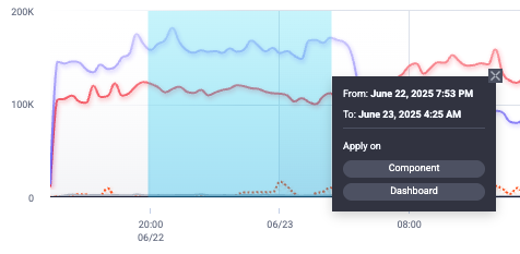 Similar to the Traffic Over Time component, you can click and drag over a specific time period on the graph to zoom in on it. You can also hover over a point to see more details about traffic at that specific time.