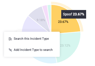 You can click each type of incident type in the legend to add or remove it from the chart. If you click the incident type in the chart, you can choose to search for it. This navigates you to the Analyzer, which is where you can investigate traffic and activity related to incident type in more detail.