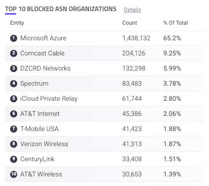 Top 10 Blocked ASN Organizations