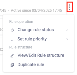 - Change rule status: Update the rule’s status.