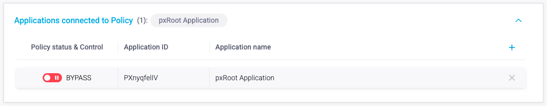 - Connect applications: Select the + to add an application to the current policy. You can only assign an application to one policy at a time.