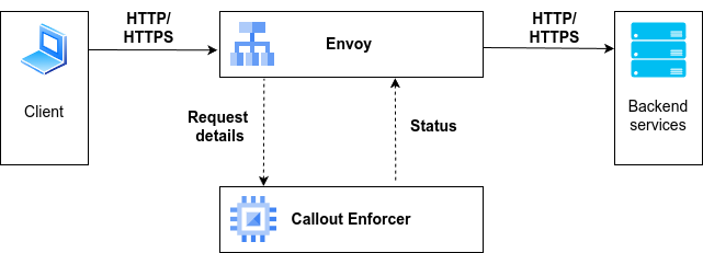 For every request Envoy sends Request Headers to Callout Enforcer and waits for the Status Response. Status Response could be either “pass” or “block and display Captcha page”.