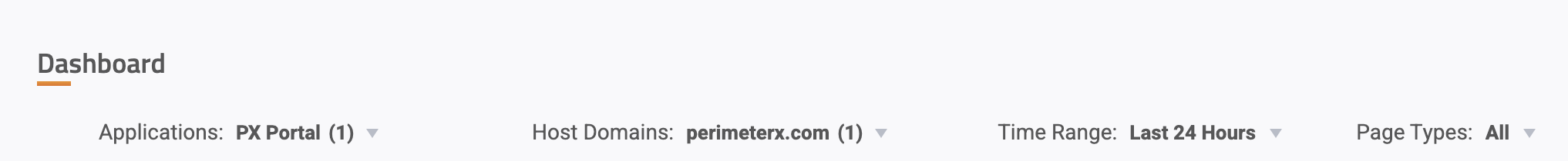 The Code Defender dashboard provides an in-depth analysis of malicious traffic and suspicious scripts on your application. Data is displayed for the past 24 hours. Data can be filtered per account Application, Host Domain, Page Type and Time Range.