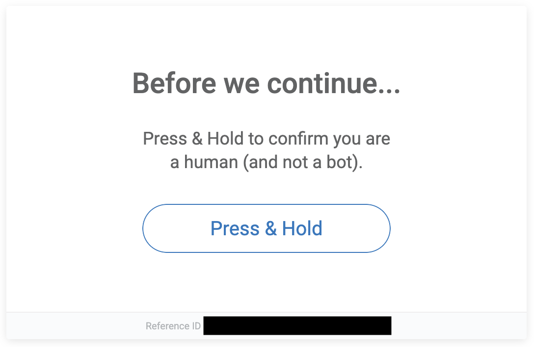 The Human Challenge is a mitigation tool that ensures the user attempting to access your site is a human. It displays a challenge where users need to press, hold, and release a button to prove they are not a bot. The key facet to this challenge is that the amount of time users need to hold the button varies, and only a human can tell what that amount of time is. This makes the Human Challenge a great alternative to traditional CAPTCHA mitigation because it’s easier and more user friendly to complete for humans while, at the same time, harder for bots to solve.