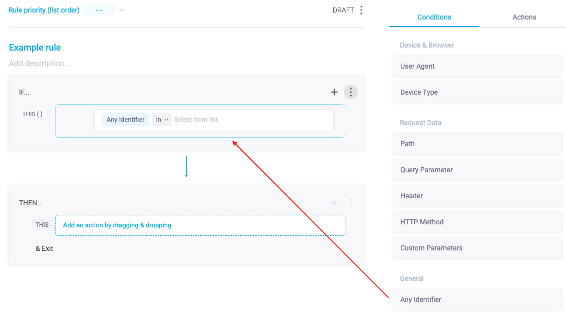 - In the IF… section, click and drag the Any Identifier condition to the THIS() field.