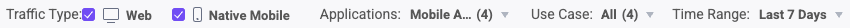 - Traffic Type: Filter by where the traffic came from, such as from web or native mobile applications.