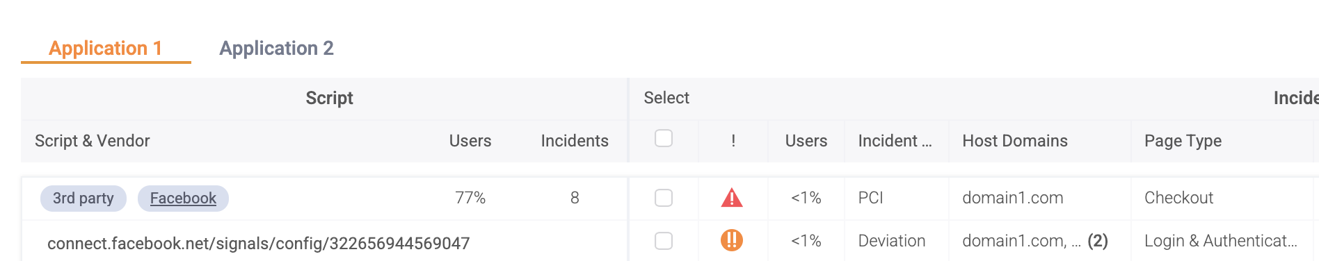 Once it is enabled, the data will be broken down by application in the portal, and the same incidents that appear on multiple host domains will be grouped into one. A new “Host Domains” column is added to the incidents table to indicate on which host domains the incident occurred.
