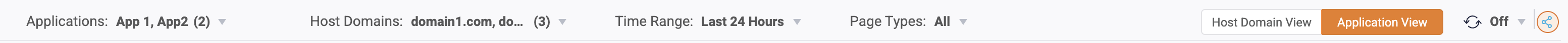 If an application (app ID) includes more than one host domain, the Application view option can be enabled.