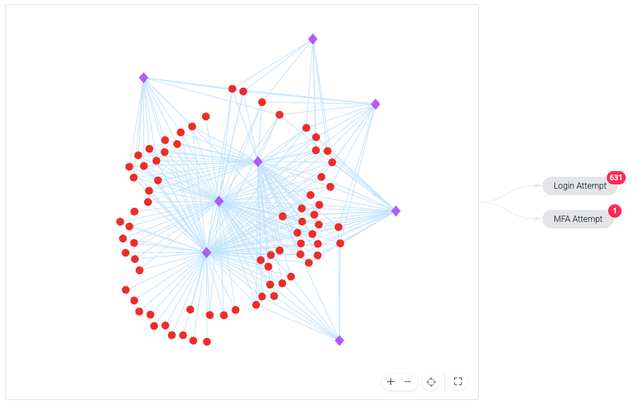 Once you have a general idea of what happened during this network attack, we recommend investigating the connections between accounts in combination with identifiers Sightline detected. Assessing these helps determine if it makes sense that Sightline flagged these accounts as part of an incident.