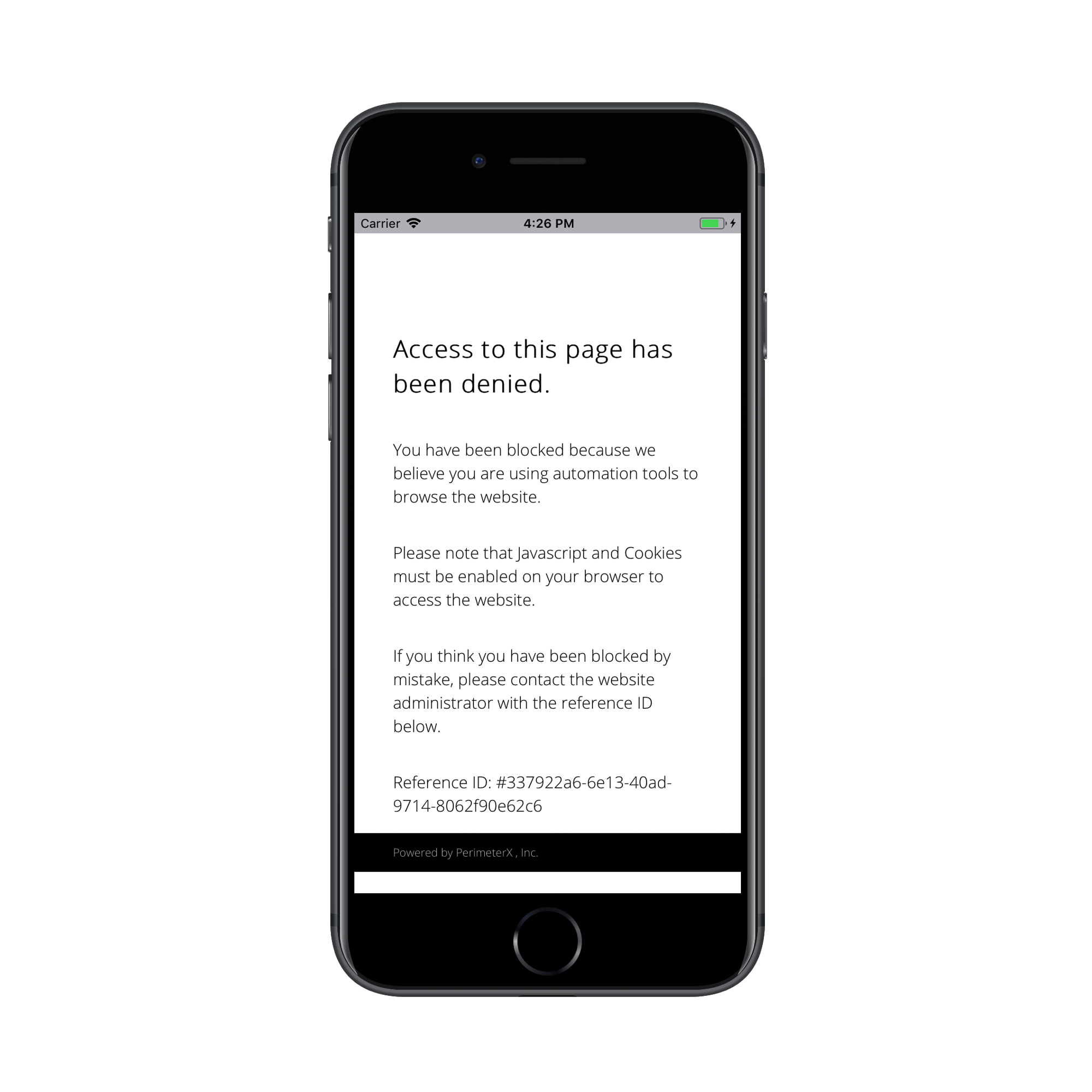 When a HTTP request is denied by HUMAN, a 403 response code is sent in the HTTP response along with a JSON body encoded as a UTF-8 that is parsed and used by the HUMAN iOS SDK. The parsed JSON is then used to render a WebView to either challenge (with CAPTCHA) the visitor, or block the visitor from continuing in the application. If the user solves the presented challenge they will return to the application. If the user fails the CAPTCHA challenge they continue to be challenged until they pass the verification screen.