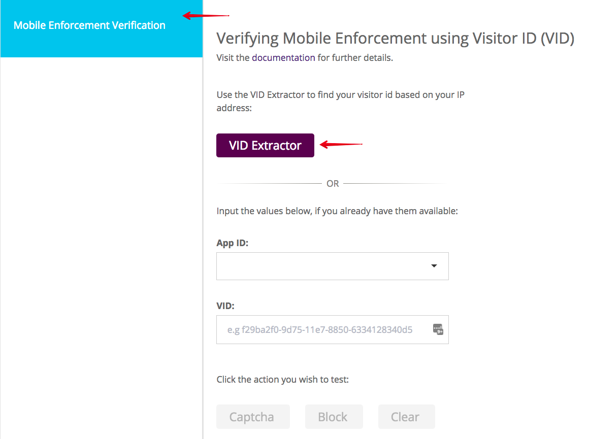 - Locate your test device’s Visitor ID <glossary:VID>, and click the <glossary:VID>Extractor button.