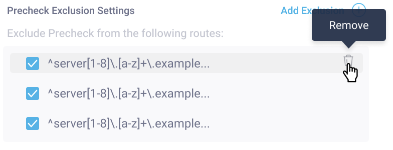 - Click the checkbox next to any exclusion to either enable or disable Precheck on matching routes.