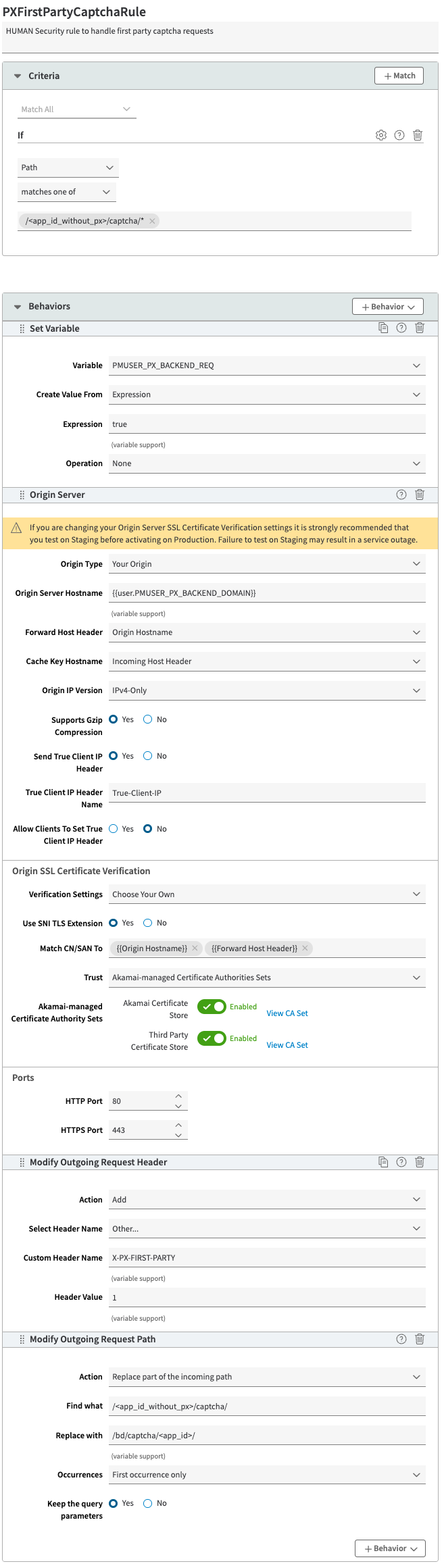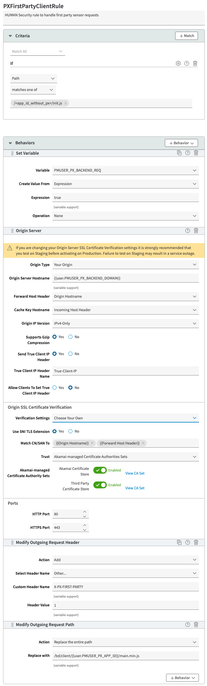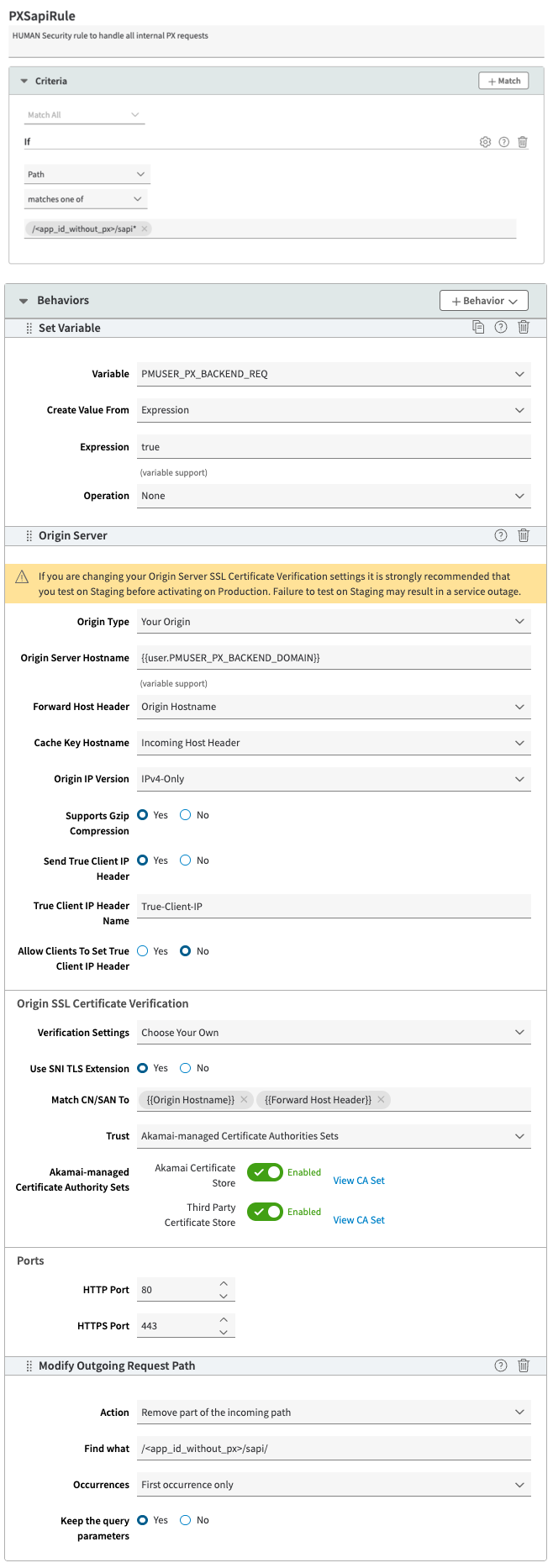 HUMAN Security rule to handle all internal PX requests. To create this rule: