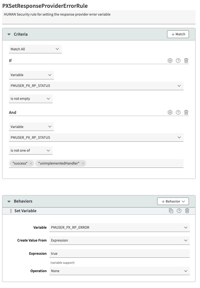 HUMAN Security rule for setting the response provider error variable. To create this rule: