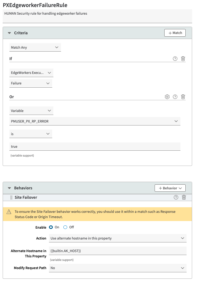 HUMAN Security rule for handling edgeworker failures. To create this rule: