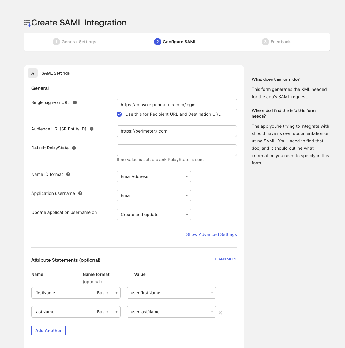 - Audience URI (SP Entity ID): (https://perimeterx.com)