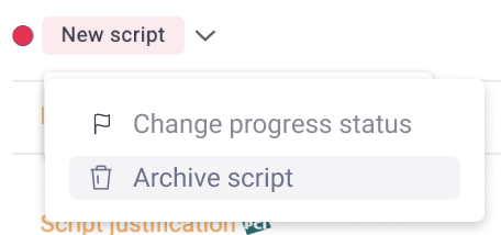 - Change progress status: Lets you move the script to a new status, add a note about the change, and share the script with the available integrations. The available statuses are: