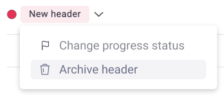 - Change progress status: Lets you move the header to a new status, add a note about the change, and share the header with the available integrations. The available statuses are: