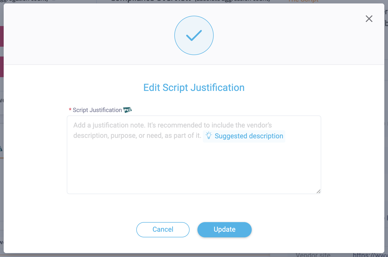 If you have the PCI Justifier role, you are only able to add Script justifications and cannot authorize scripts. After you justify, if authorization has not yet been provided, the script will move to the pending authorization status for the PCI Authorizer role to review. See Role permissions for more information.